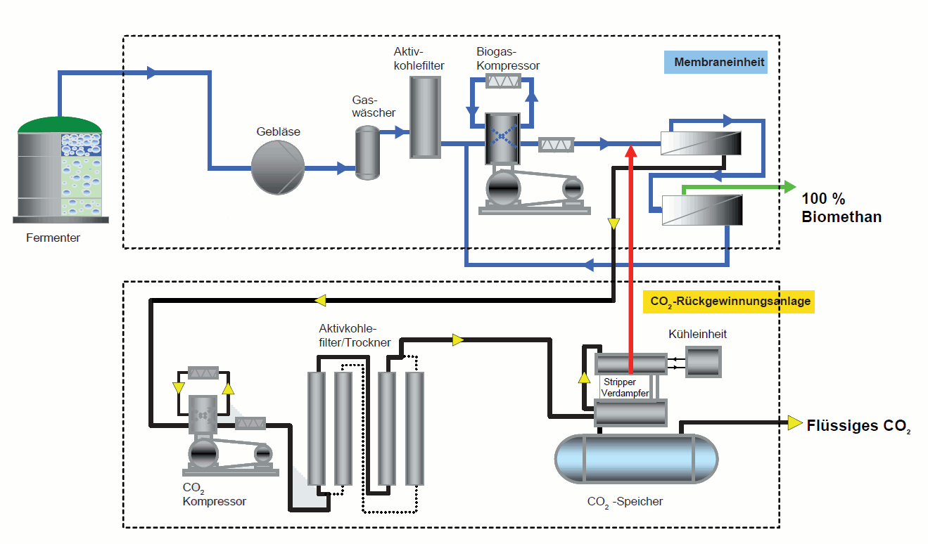 Auftrennung des Biogases in methanreiches und CO2-reiches Gas