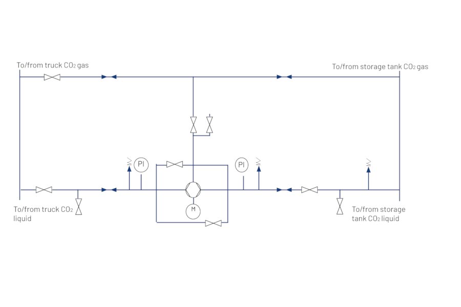 The Truck Filling Unit is equipped with a two-way pump which enables it to transfer CO2 to and from a storage or transport tank: