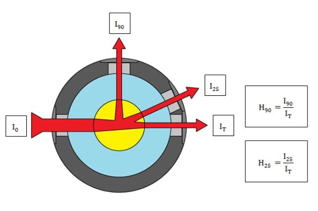 Particles smaller than 1 μm, such as proteins, mainly cause the light to be scattered under 90°. This is measured with our 90° sensor. Particles larger than 1 μm, such as diatomaceous earth, yeast, and fruit pulp mainly cause the light to scatter forward. This is measured by our 25° sensor.