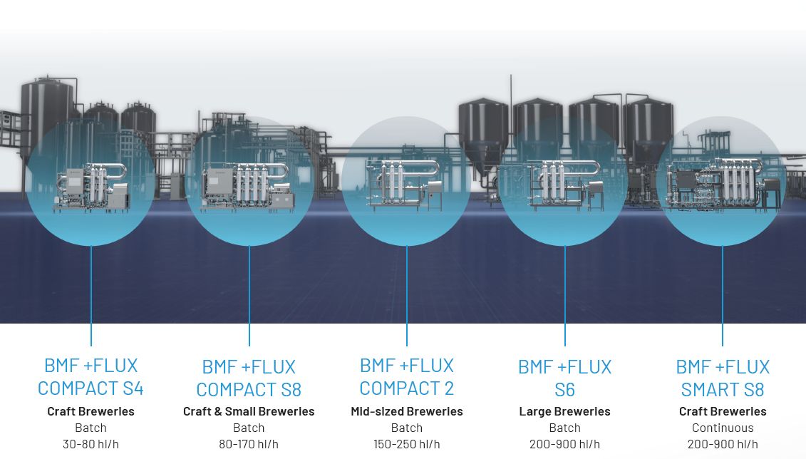 The Pentair BMF +FLUX Compact S8 is a fully automated beer membrane filtration system designed for small and craft breweries.