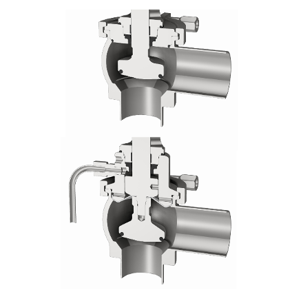 Südmo Single Seat Overflow Valves SVP Select EAF+ are equipped with adjustable set pressure actuator.